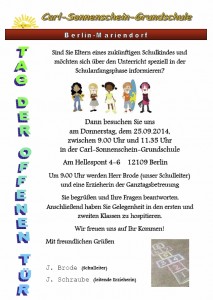 Um 9:00 Uhr werden Herr Brode, unser Schulleiter und eine Erzieherin der Ganztagsbetreuung Sie begrüßen und Ihre Fragen beantworten. Anschließend haben Sie die Gelegenheit in den Klassen zu hospitieren.