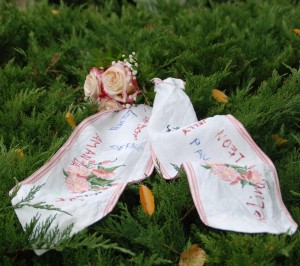 Am Grab zündeten wir 2 Kerzen an und unterschrieben auf der Schleife des Blumenstraußes. Zum Schluss sangen wir noch ein Lied(„Aufstehn, aufeinander zugehn“).